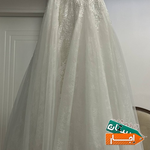 لباس عروس مدل آفشولدرحریر، پارچه ی دانتل اروپایی کارشده و دوخت مزونی، فقط یک بار پوشیده شده و کاملاً تمیز و مثل نو.