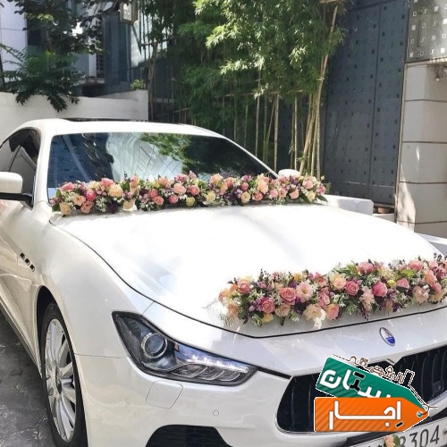 اجاره ماشین عروس با دسته گل،تاج و باکس گل